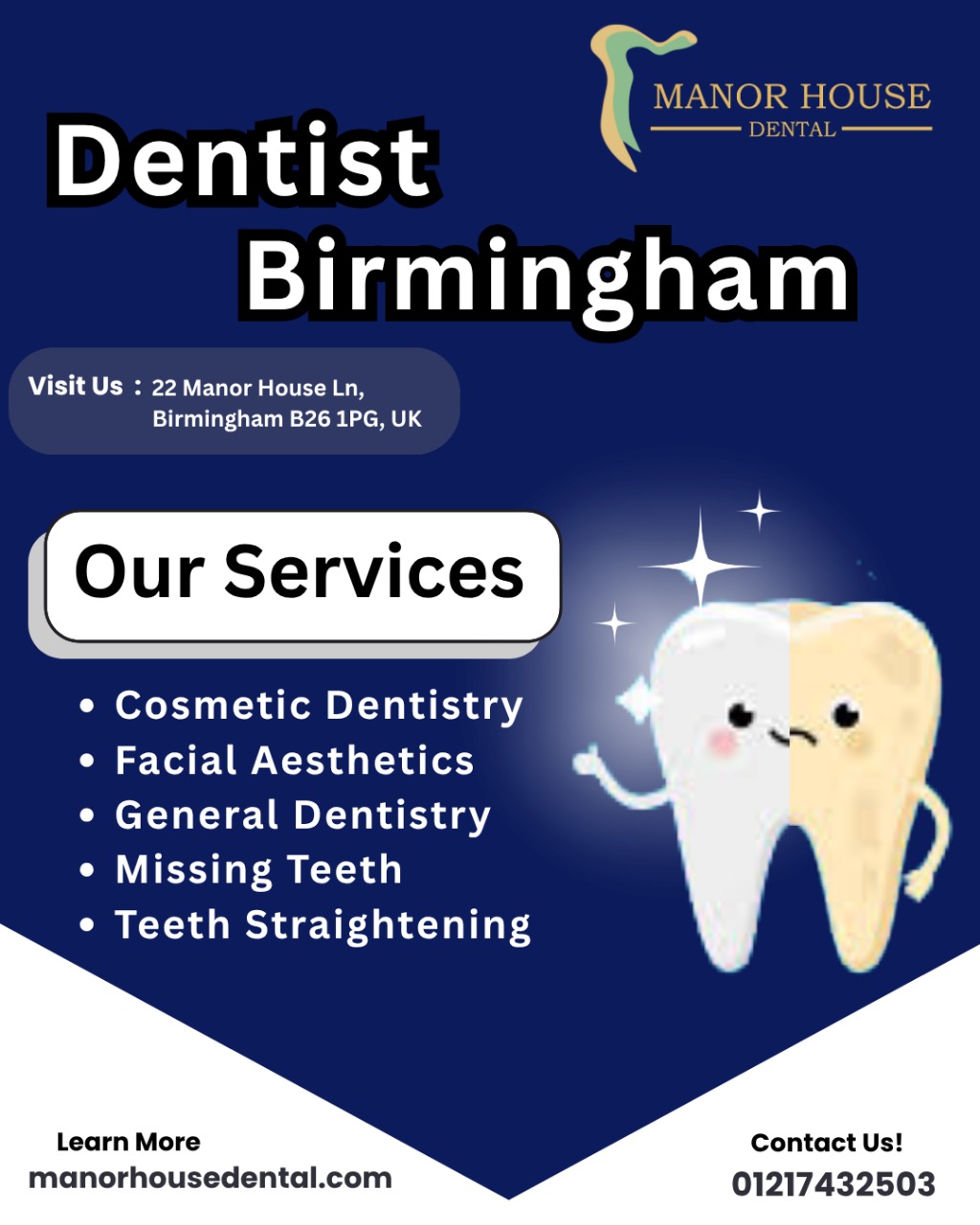 Dentist Birmingham At Manor House Dental, we provide all aspects of orthodontics, cosmetics, and family dentistry with the best modern practice. Book today!